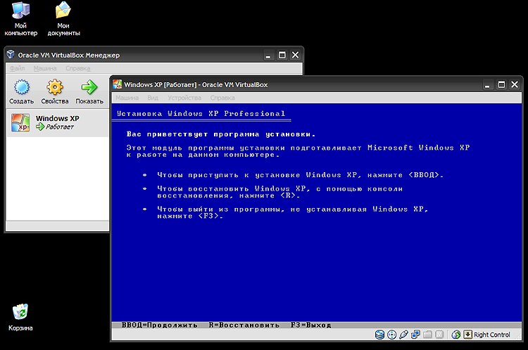 VirtualBox и жмем кнопку "Старт". Запустится виртуальная машина, на